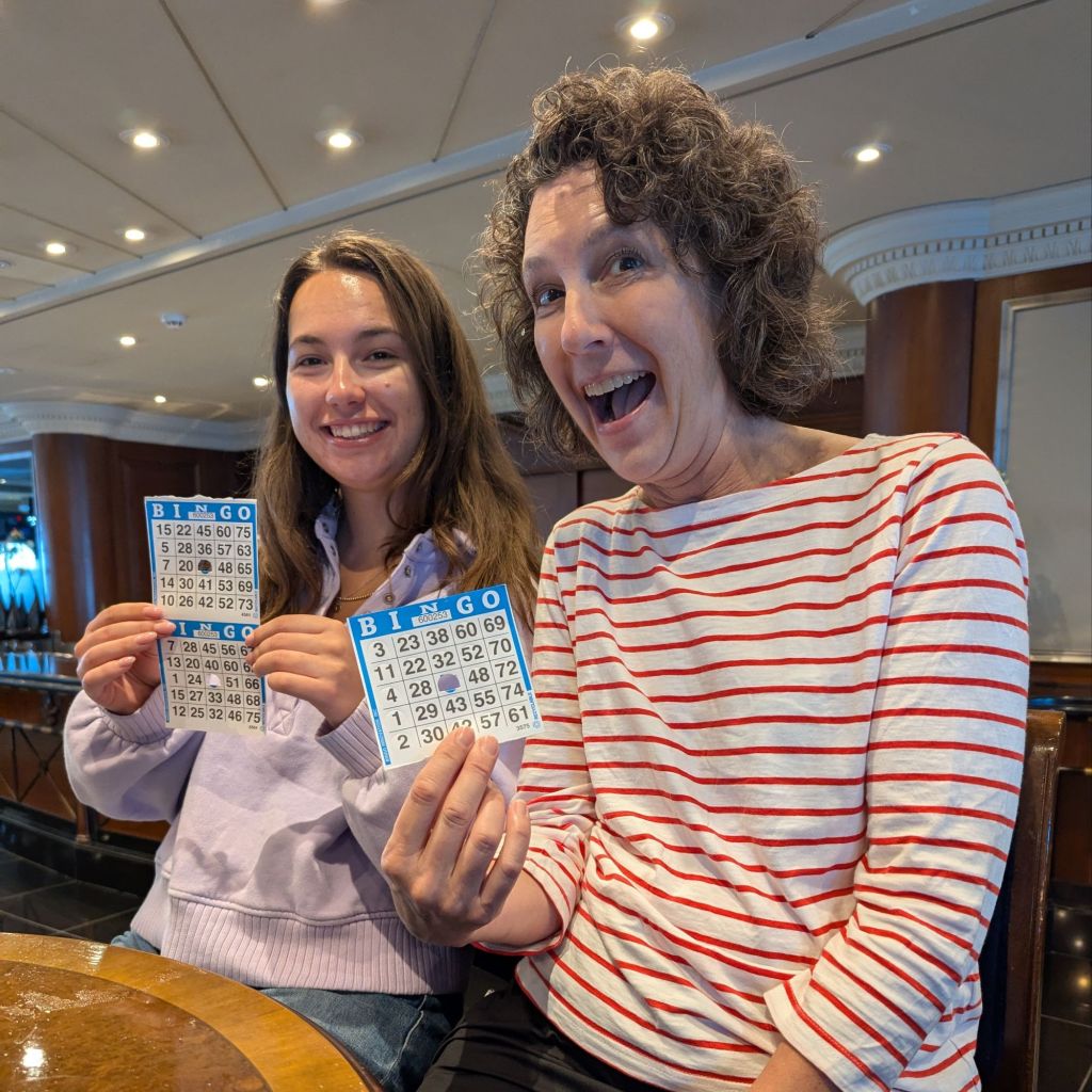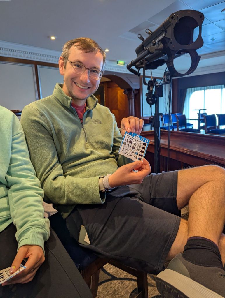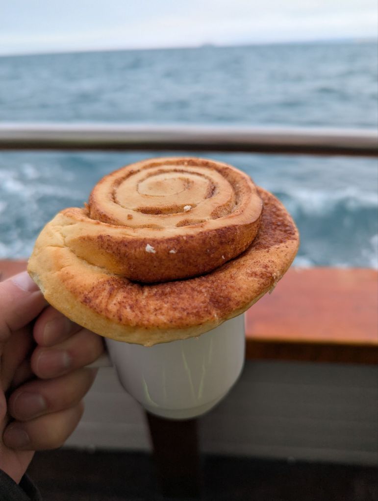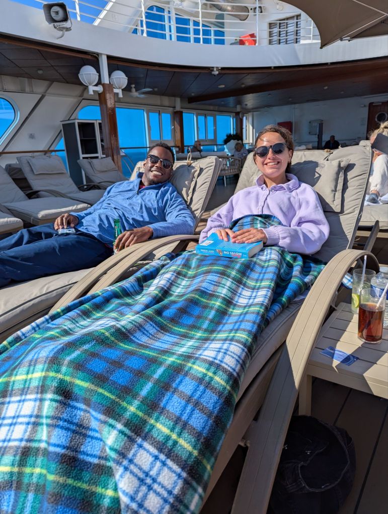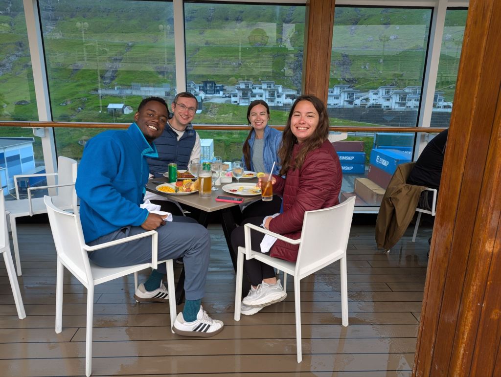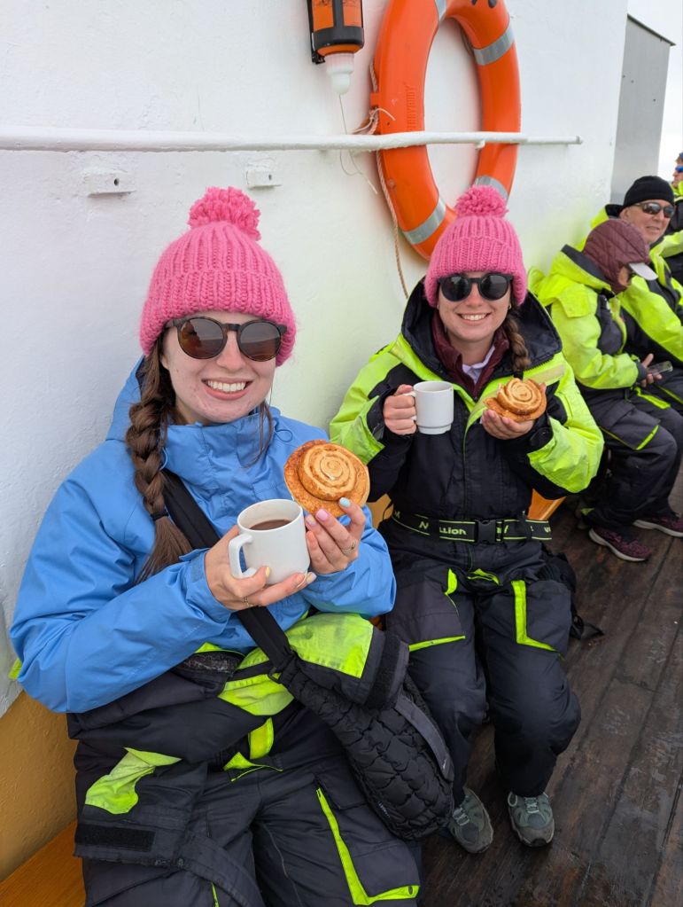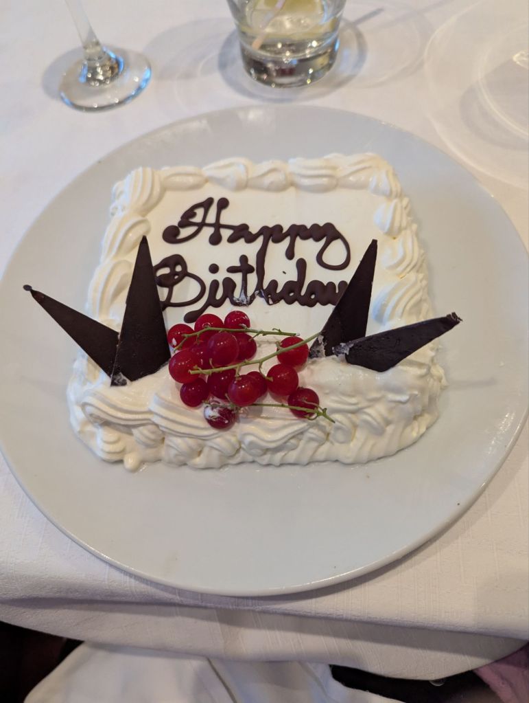 Back at the ship, we had one final surprise in store. Lindsey had no idea we’d arranged to celebrate her birthday a day early. The ship’s staff outdid themselves, helping us mark her special day with cake, decorations, and warm wishes. It was the perfect ending to an extraordinary day—waterfalls, glaciers, volcanic pizza, and a birthday celebration at sea.