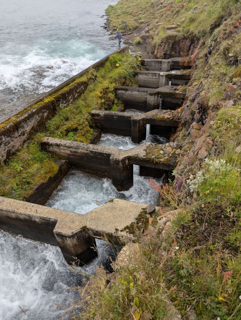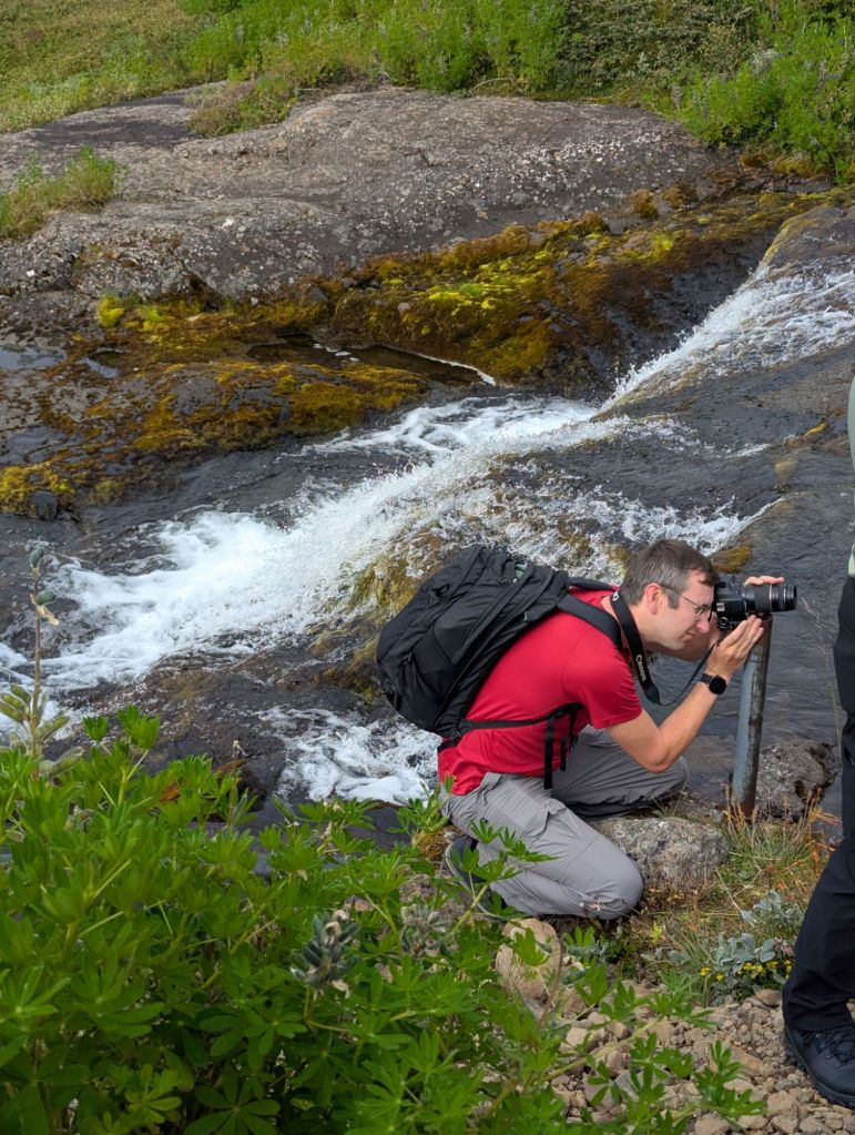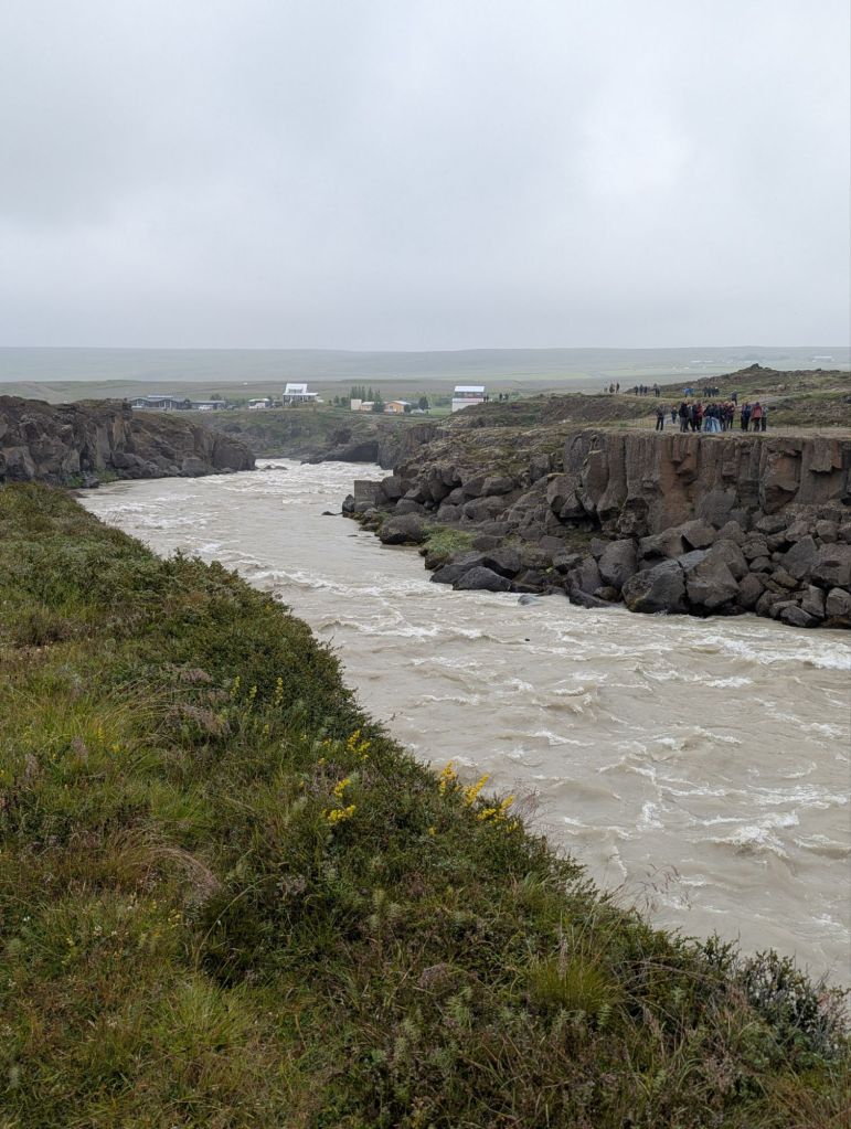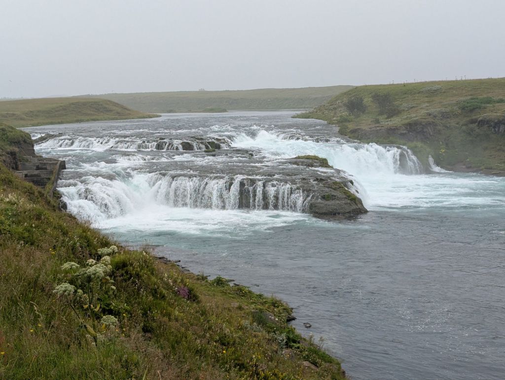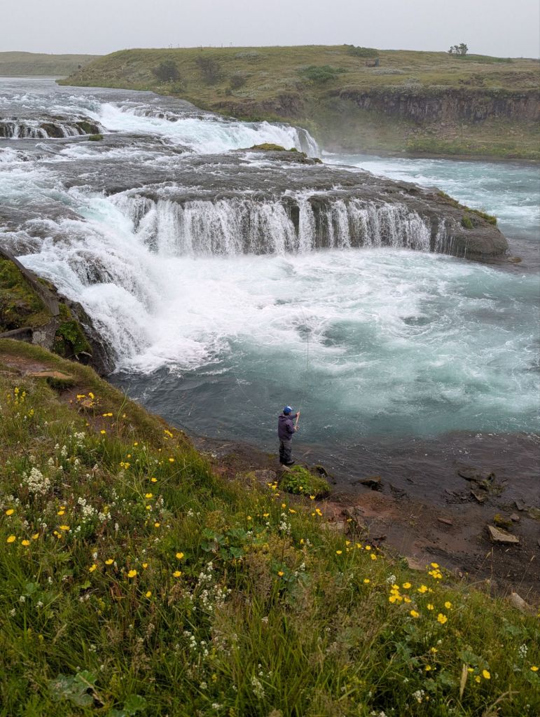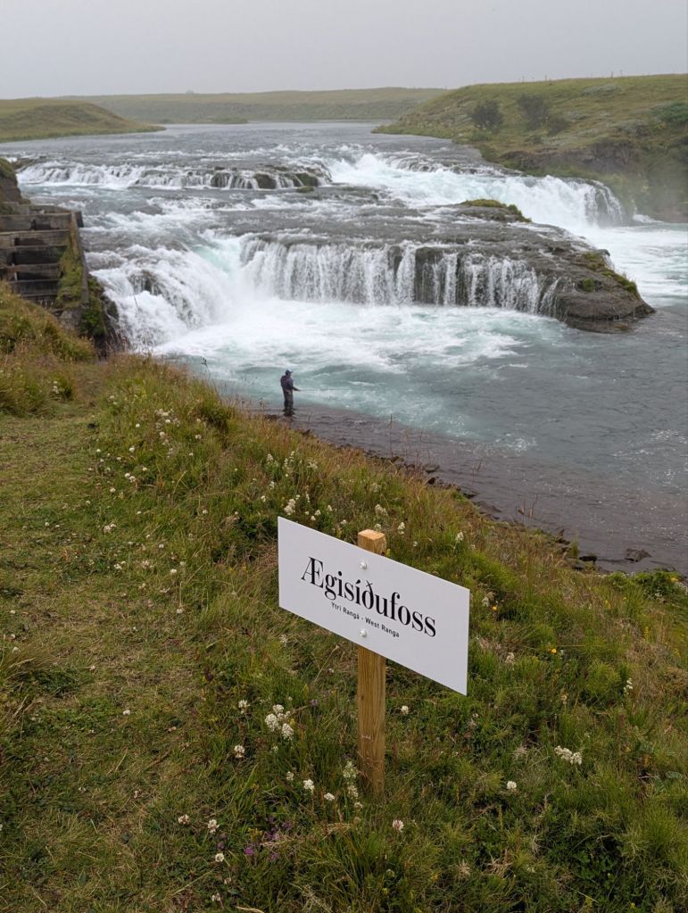 Our first stop was Ægissíðufoss, a picturesque waterfall on the Ytri-Rangá River. While the falls themselves are beautiful, what makes this spot unique is the salmon ladder beside it. This concrete “fish highway” allows salmon to bypass the falls on their upstream journey. Our guide explained that fly fishing on this river is carefully managed – permits are required, and anglers rotate through specific areas of the river to ensure sustainability. Watching the power of the river and imagining the salmon leaping upstream was fascinating.