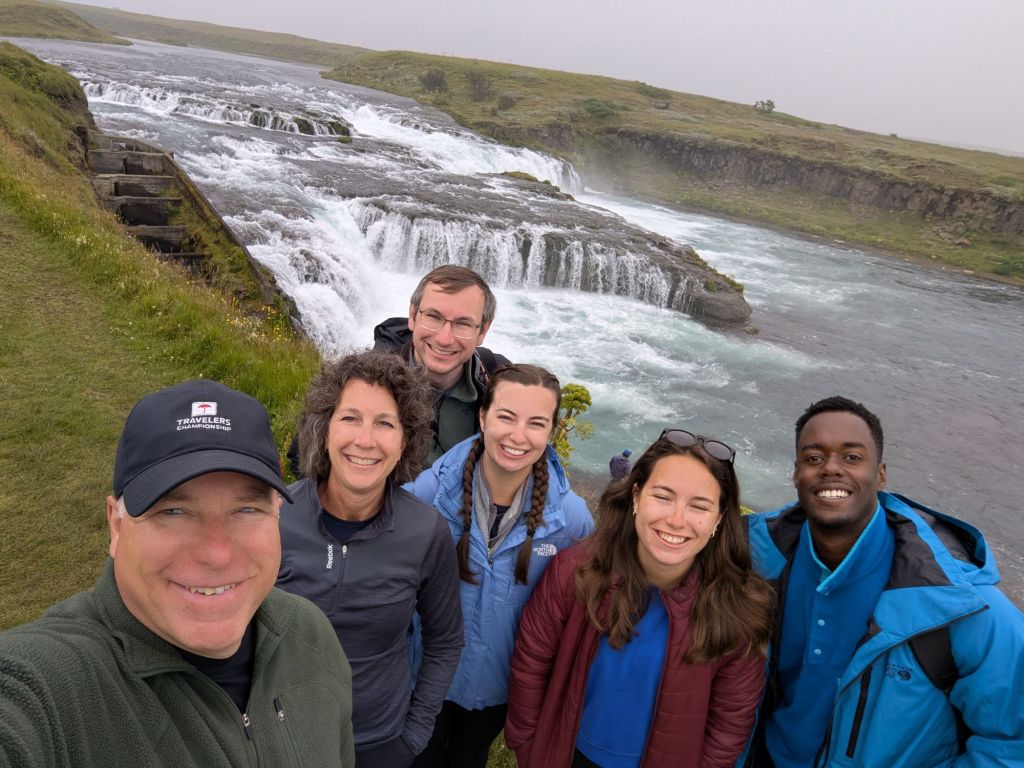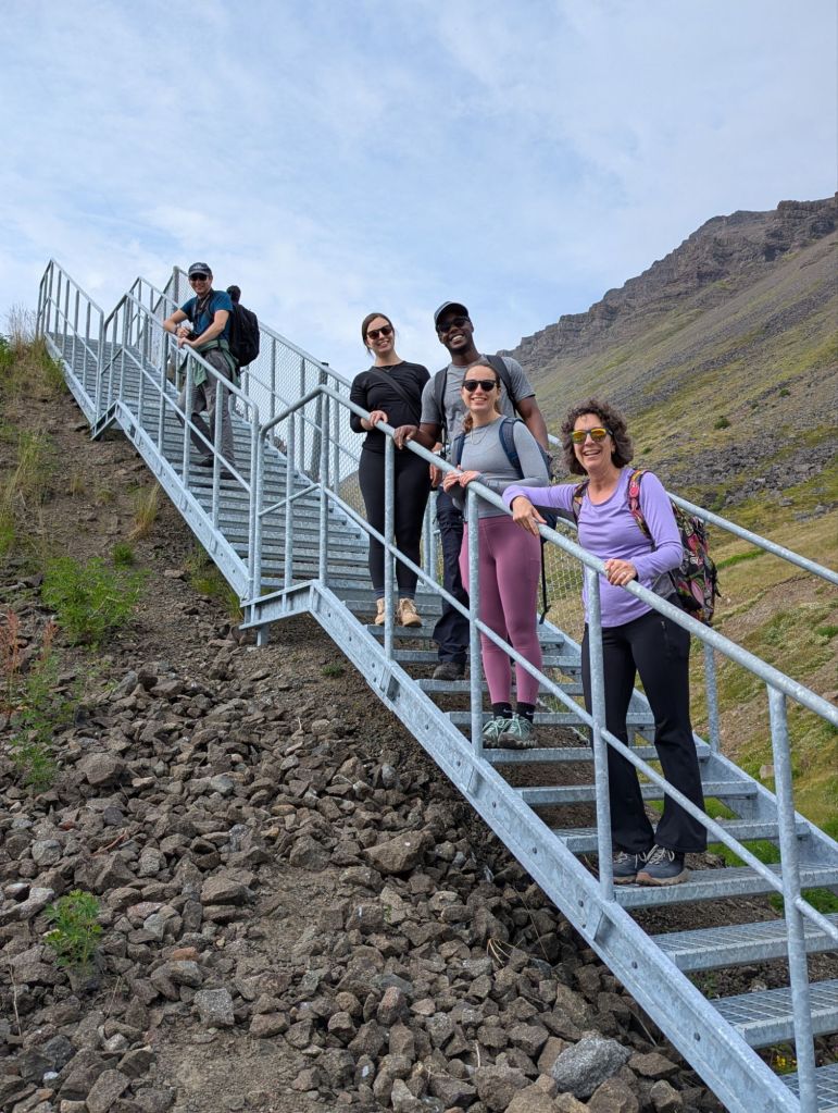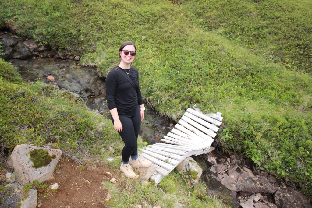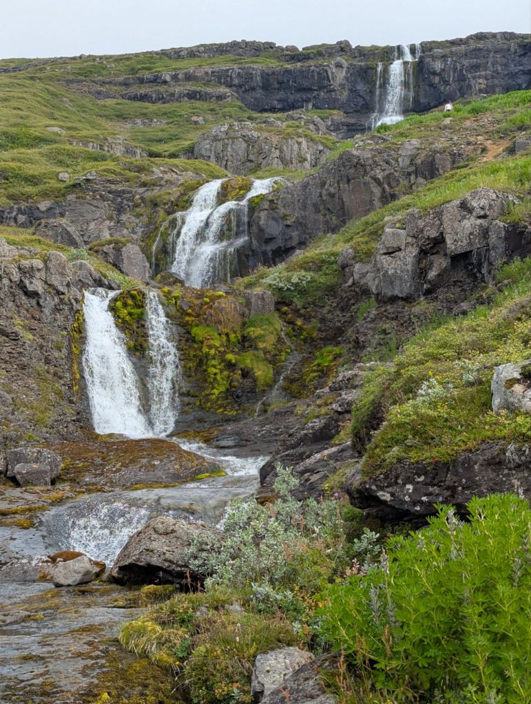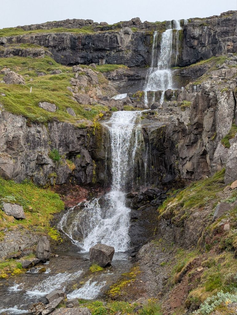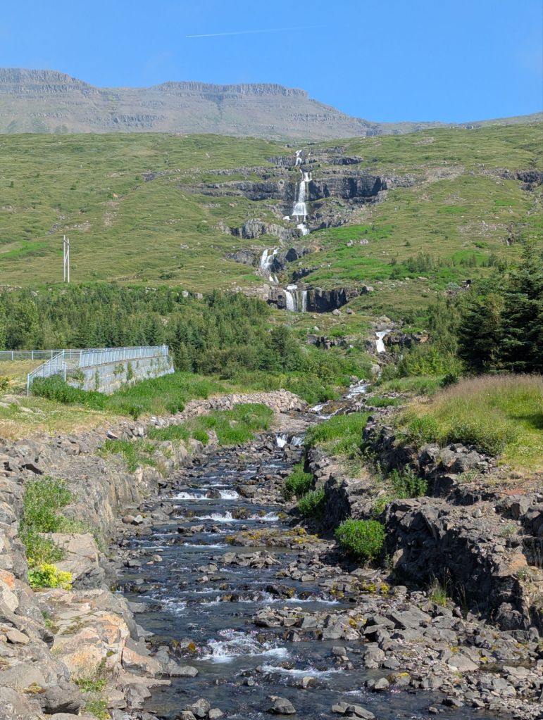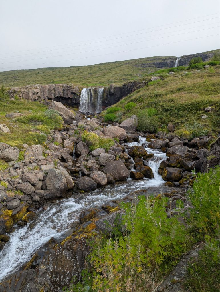 Our first stop was Ægissíðufoss, a picturesque waterfall on the Ytri-Rangá River. While the falls themselves are beautiful, what makes this spot unique is the salmon ladder beside it. This concrete “fish highway” allows salmon to bypass the falls on their upstream journey. Our guide explained that fly fishing on this river is carefully managed – permits are required, and anglers rotate through specific areas of the river to ensure sustainability. Watching the power of the river and imagining the salmon leaping upstream was fascinating.