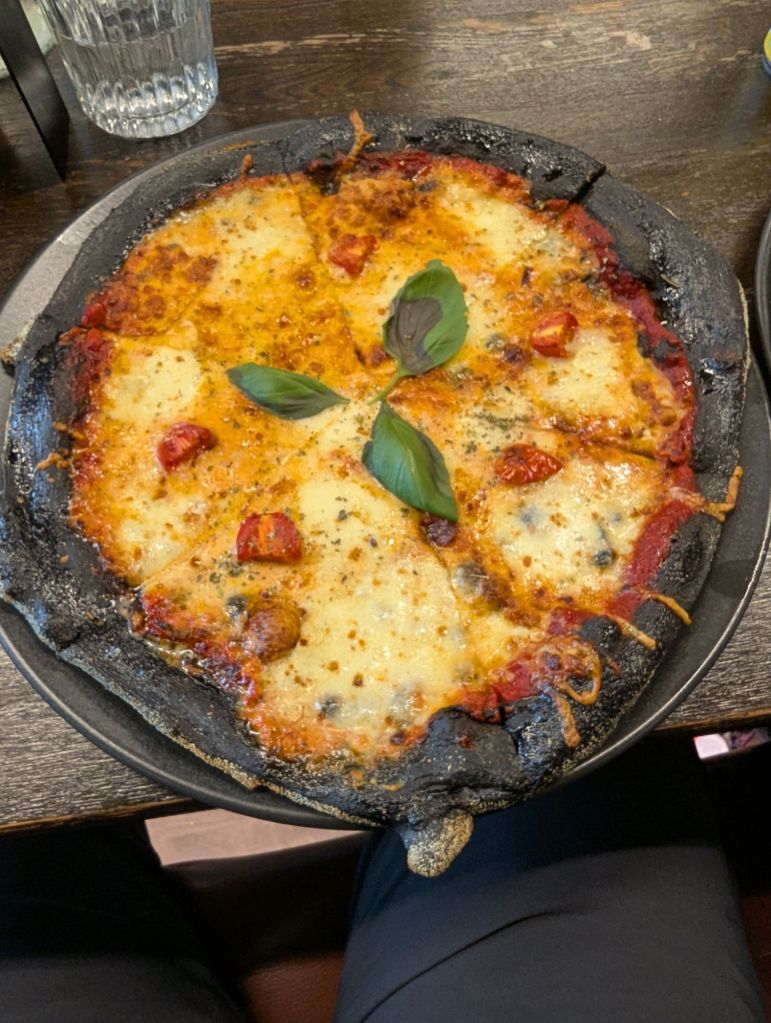 After hours on the ice, hunger hit hard. We stopped at Black Crust Pizzaria, a quirky and popular restaurant where the pizza dough is dyed black with activated charcoal. It felt fitting to eat something that looked like it was made from volcanic ash after spending the afternoon walking across a glacier shaped by Iceland’s fiery geology.
