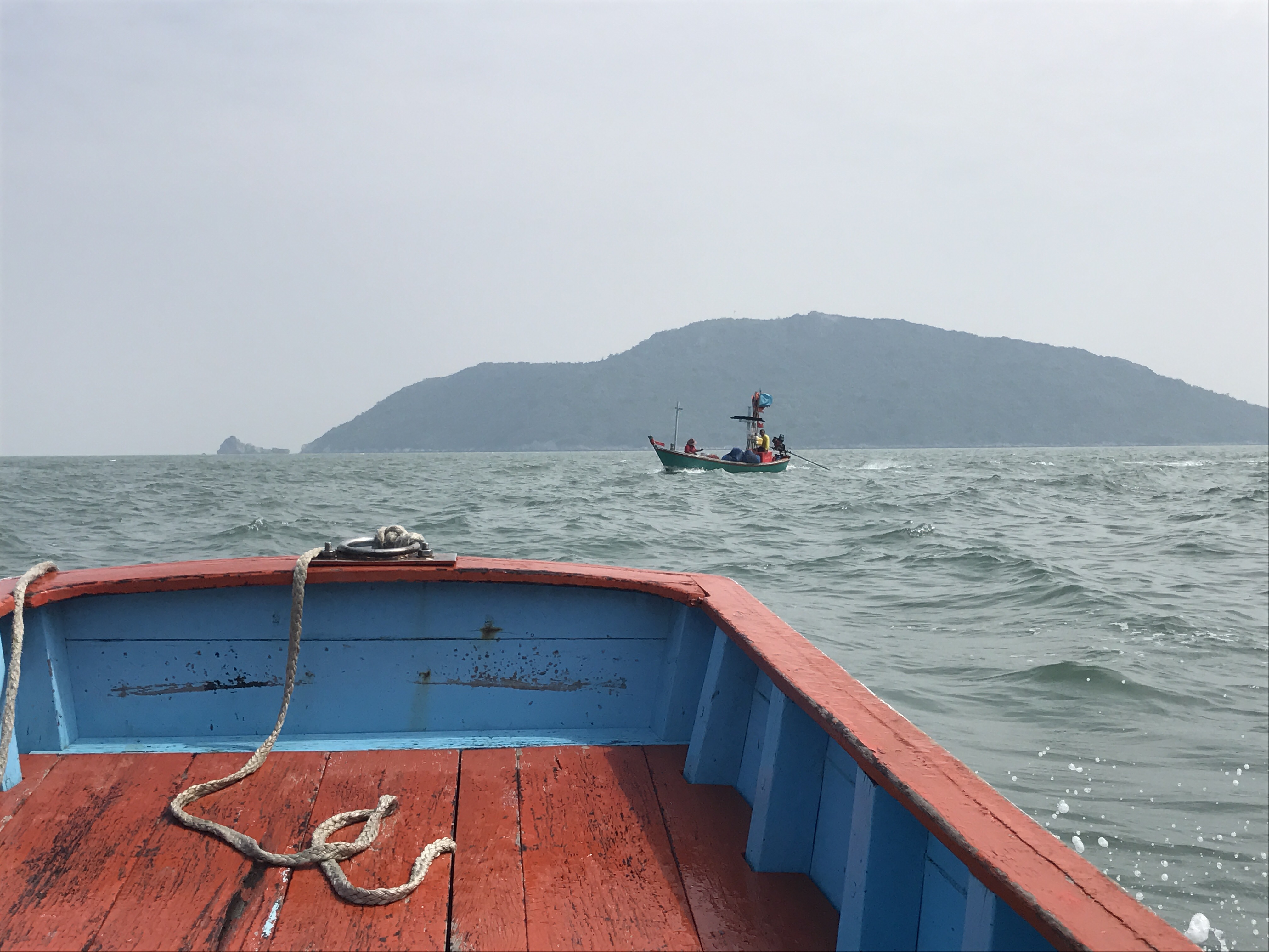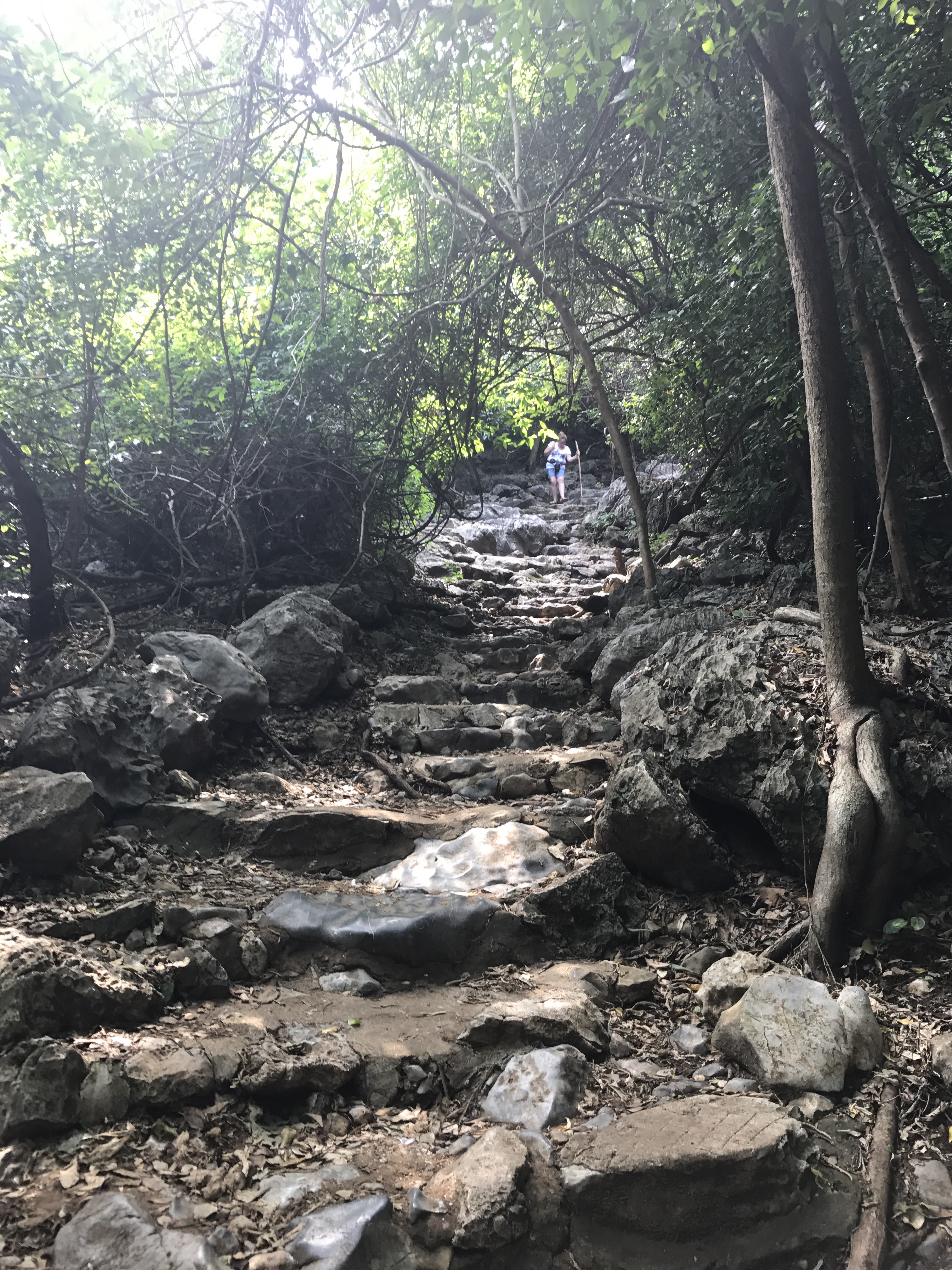 After an hour and a half long car ride we arrived at the park and Prom showed us and the three couples who were also in our group around the main platform where visitors eat lunch and where we could feed the elephants. They brought out buckets of watermelons and squashes and the elephants came right up to the platform to take them out of our hands with their trunks.