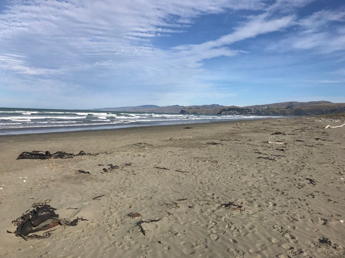Beginning the tramp- we would end up at the top of the mountain behind the hills you can see in the background