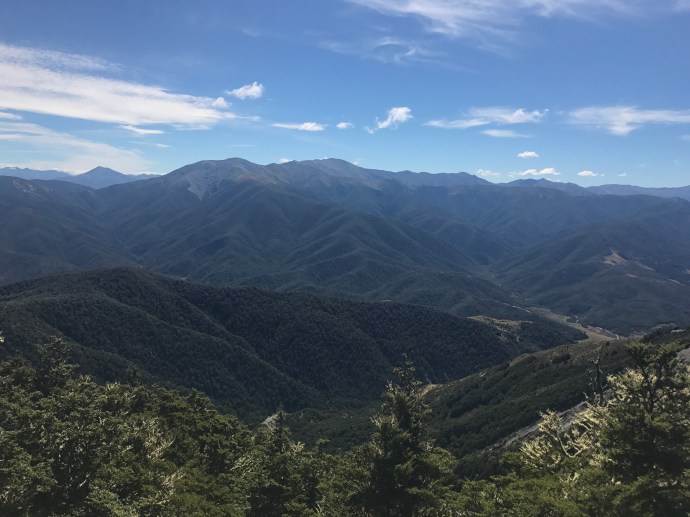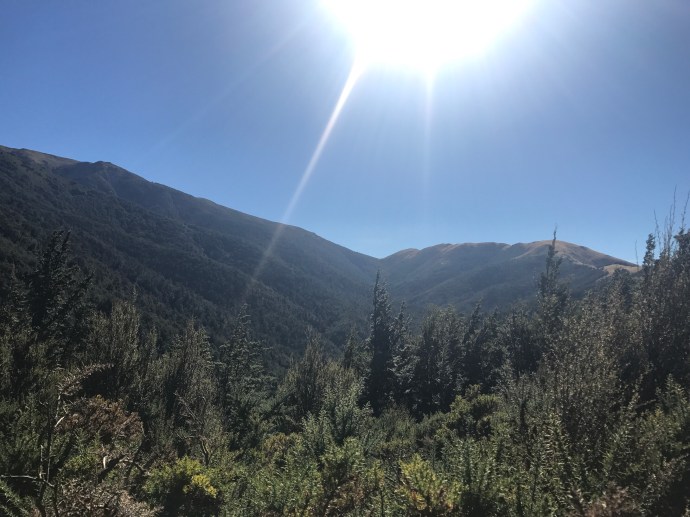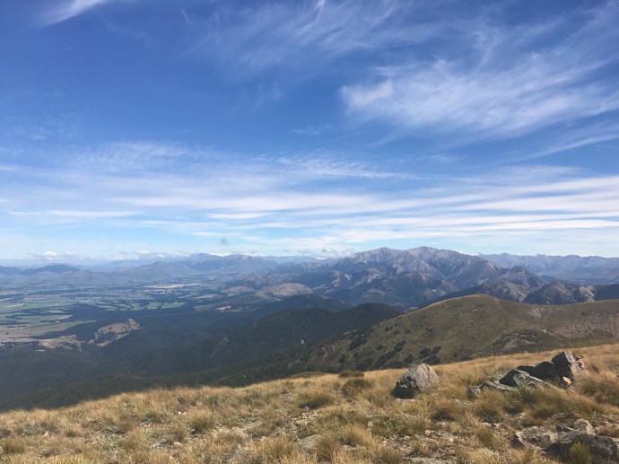 Pretty soon into the tramp I realized it was going to be more difficult than I had been expecting. The trail was pretty steep and there were not many flat areas to give your legs a break, so the hike up the mountain was quite strenuous. On the way up, I was walking with a couple other people that were new to tramping and we were able to take our time when we needed to rest. The good thing was that the weather was beautiful and it was sunny with a nice cool breeze. A couple times that I didn’t know if I could go any further, I stopped and looked out at the landscape and the surrounding mountains and farmland. It was so beautiful and calming!