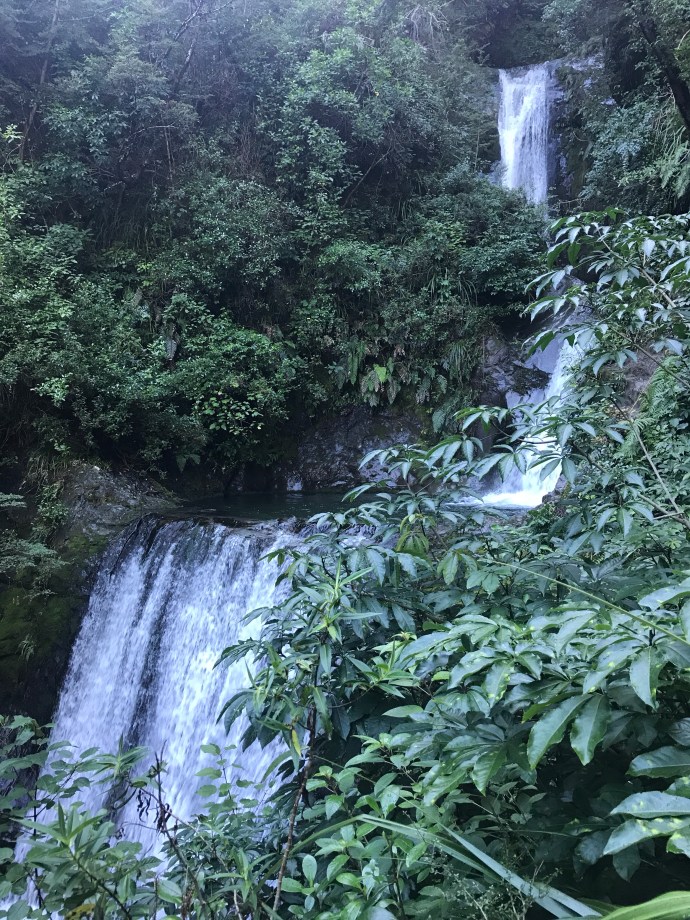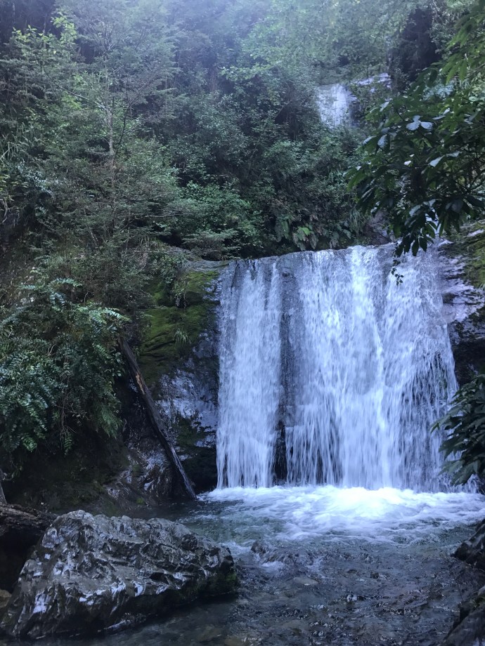 To get down the mountain, you could either go back the way we had come or continue around the loop that would go by a waterfall and end up where we had started. Continuing on the loop would be longer, but I figured if I had already made it this far I might as well go all in and finish it. We started down the trail and pretty soon it began getting very steep again. There were lots of loose rocks and dirt which made it hard to not slip and fall. Going down was difficult as well, but in a different way. Now my muscles were really working and I could feel my legs shaking if I stopped walking. After a couple more hours of tramping, we came to the junction where we could go slightly out of our way to get to Ryde Falls. We walked for about another hour to get to a beautiful triple waterfall. Some people in the group got in the water but said it was really cold, so I refrained from getting wet, especially since I didn’t want my shoes to be very wet for the rest of the walk.