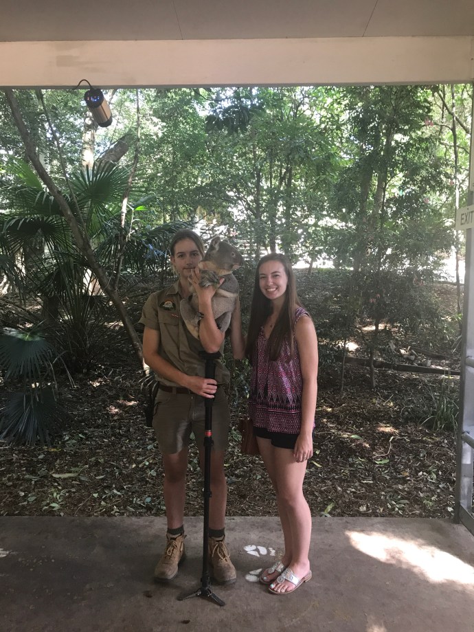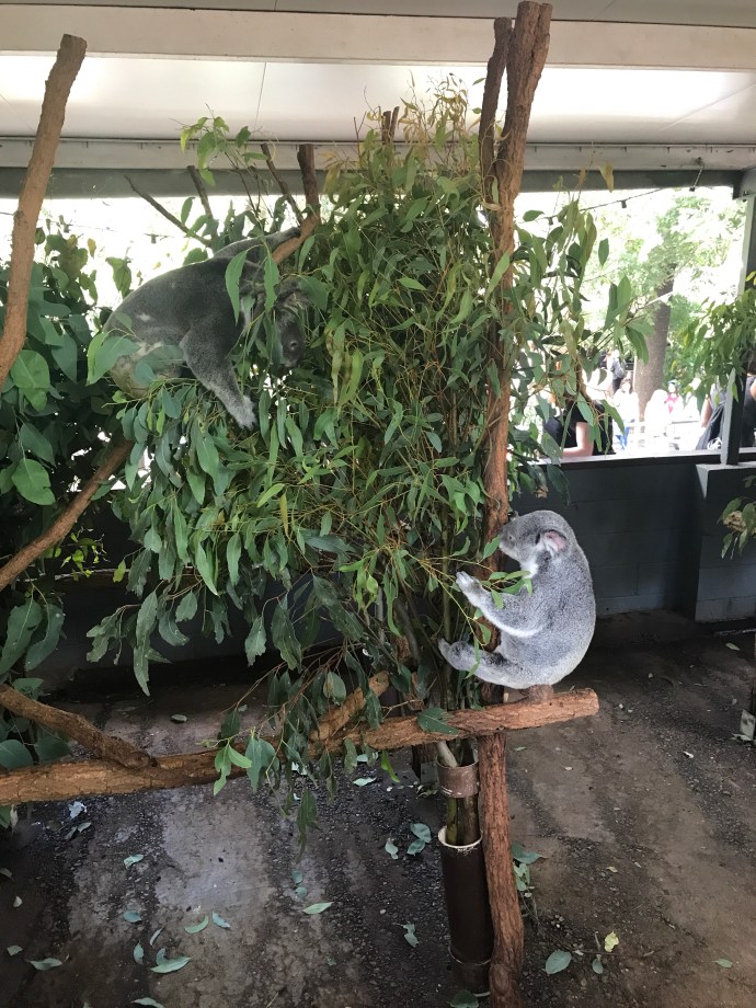 After waking up at 4 am to get on a plane from Christchurch to Brisbane, we arrived and were picked up at the airport by Wally, a relative of Diana’s. It turns out that Diana’s mom and Wally had been talking for years because they both were interested in learning about their ancestors and traced their family tree back to a very small village in Ukraine. They believe that Diana’s great grandfather and Wally’s grandfather were cousins or something like that. We went back to Wally and his wife Bev’s house to drop off our luggage and then Wally kindly drove us to the Lone Pine Koala Sanctuary, the world’s first and largest koala sanctuary.