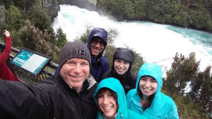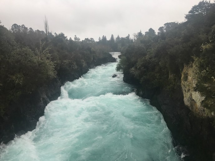 We didn’t have enough time to really stop at Lake Taupo, but we did go to Huka Falls, which flows into the lake and is unlike a lot of the waterfalls I’ve seen. Instead of being really tall or wide, it is a narrow waterfall with a lot of water flowing through. It was bright blue and tons of water was flowing so fast. It was pretty amazing to see and hear how powerful the waterfall was, so definitely a good stop on our way to Rotorua.