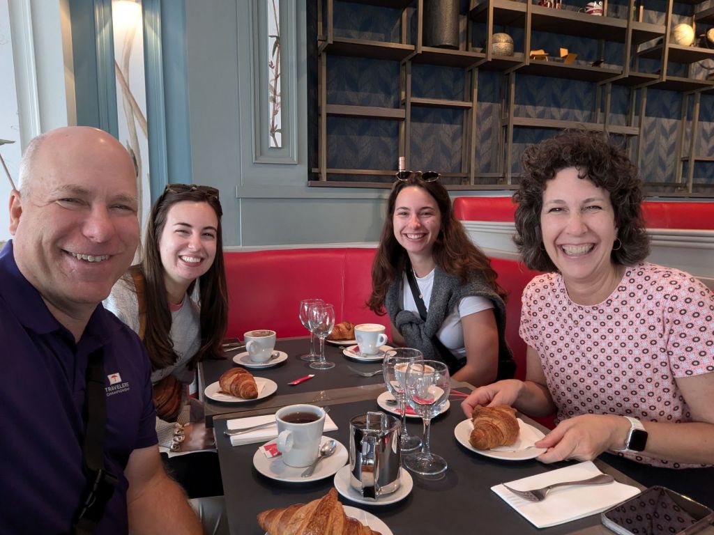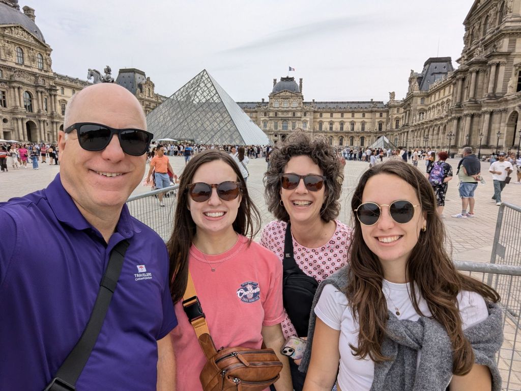 Saturday, June 29, 2024: Day 1 of a Hammond Family Adventure. It was a long first day. The evening of Friday, June 28th, Greg & Karen left from Boston, MA and Kelsey & Lindsey from Atlanta, GA on overnight flights arriving in Paris, France early Saturday morning. In Hammond Family style we “hit the ground running” and were determined to stay up all day to get on the new time zone.