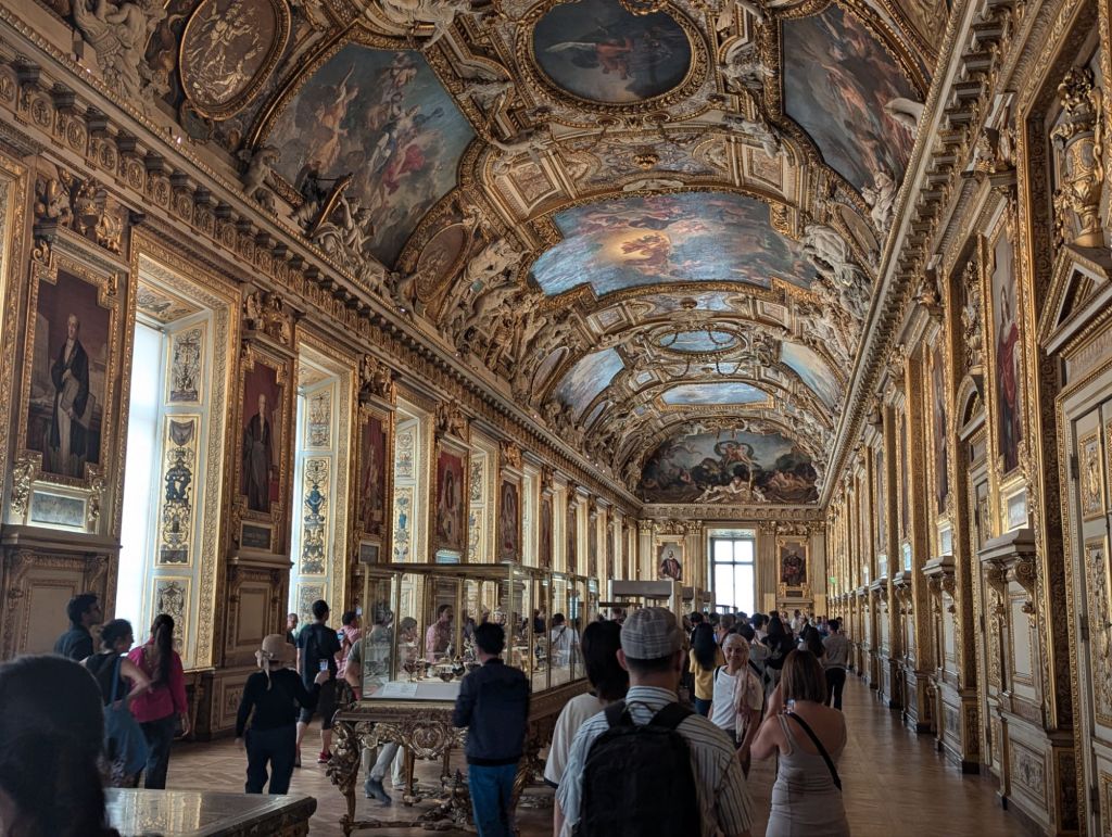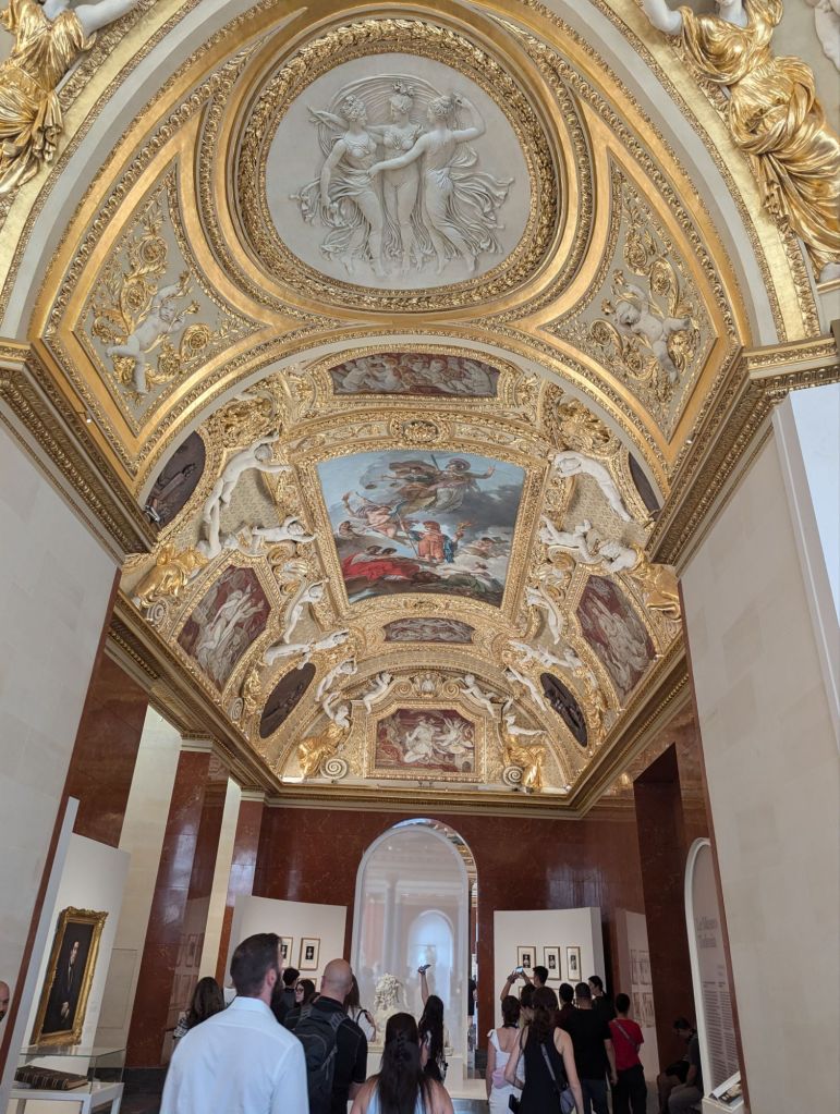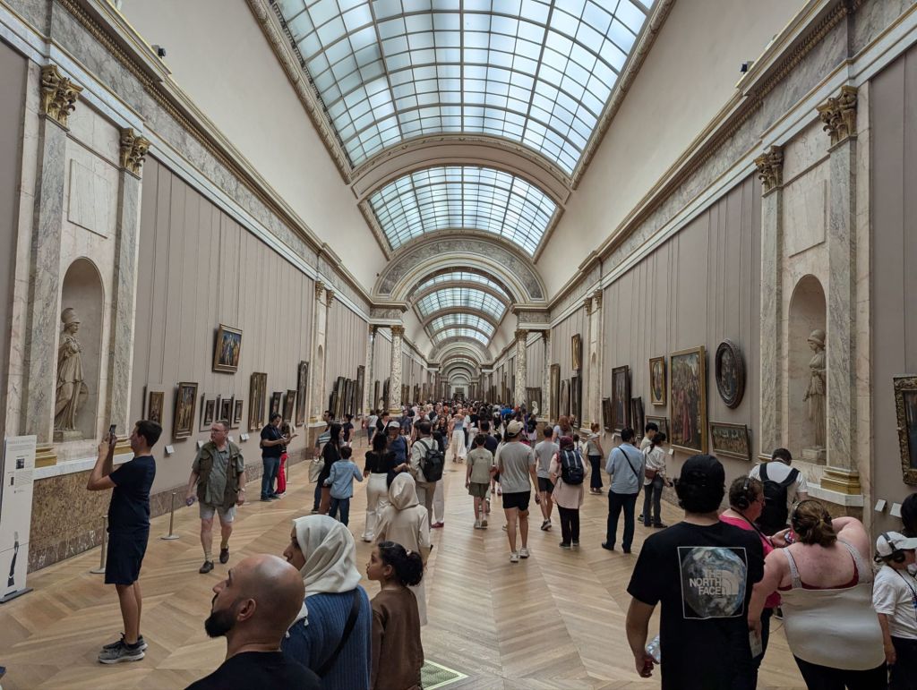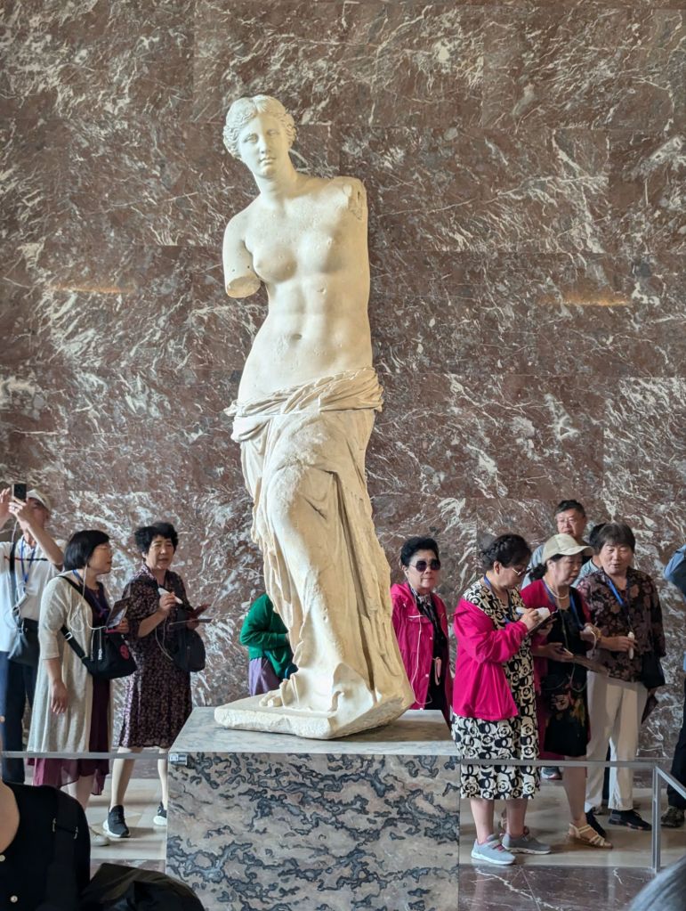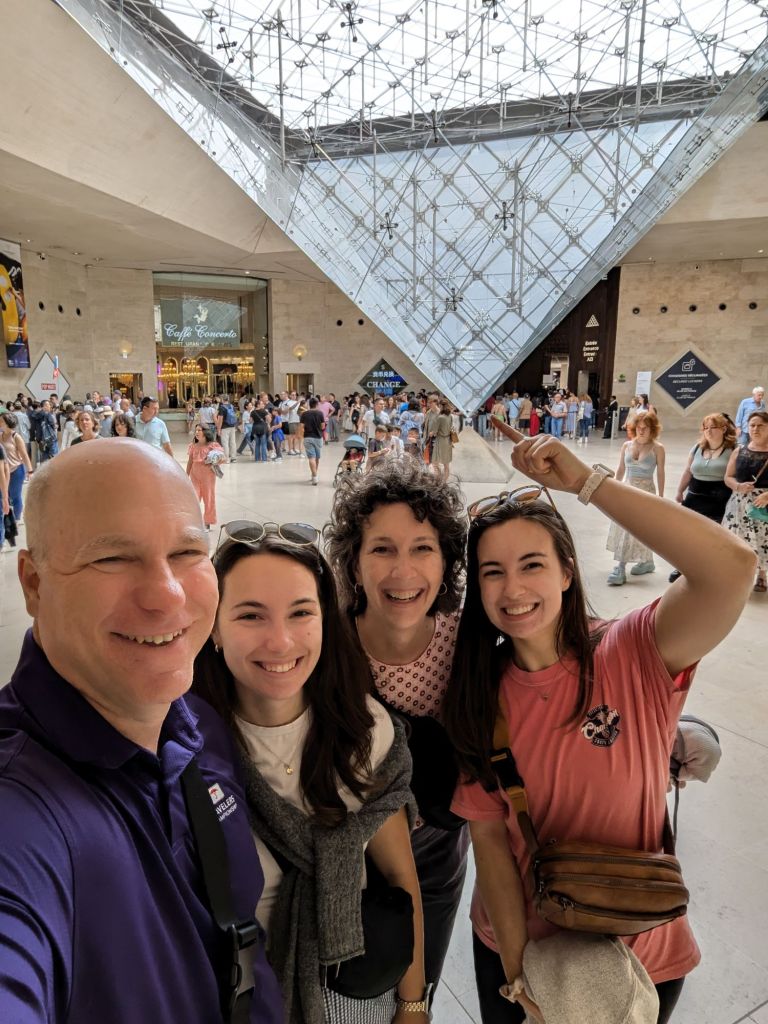 After a brief check in at our hotel and breakfast with caffeinated beverages (Lindsey tried her first cup of coffee), we explored Paris with a walk to the Louvre where we spent a couple of hours seeing some incredible art and artifacts with a Rick Steves audio tour.