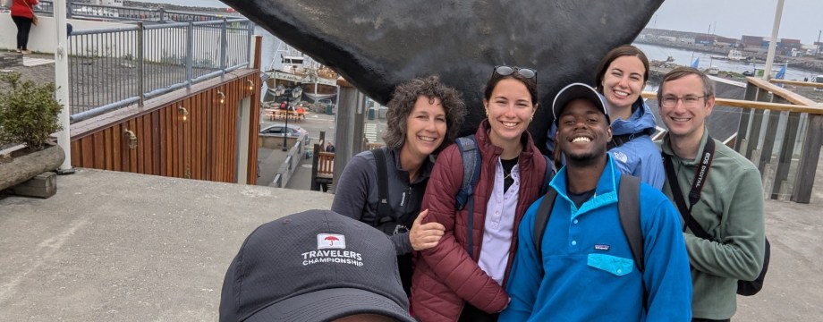 After a quick lunch back on the ship, we geared up for our afternoon adventure: a whale and puffin watching tour. Kelsey gave each of us a handmade knit hat, complete with a pom-pom, which not only kept us warm but also made us a recognizable group on the way to the dock. Our coordinated look drew compliments from fellow passengers.