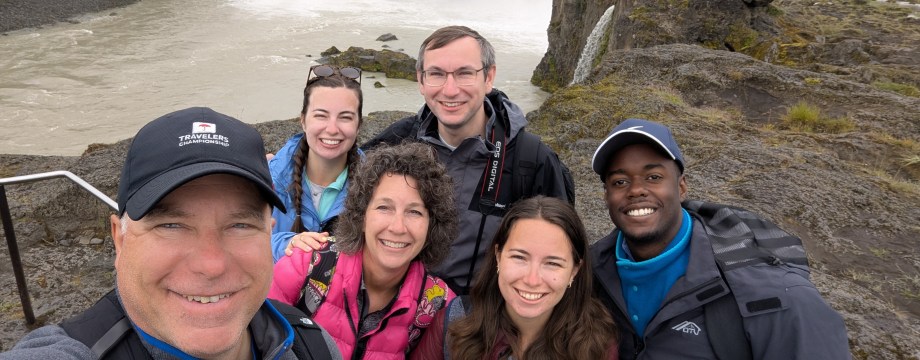 On our way back to town, we stopped briefly at a scenic overlook with sweeping views of Eyjafjörður. After lunch and a quick wardrobe change on the ship, some of us made a brisk walk into town to see the Akureyri Church (Akureyrarkirkja). Designed by renowned architect Guðjón Samúelsson (who also created Reykjavik’s Hallgrímskirkja), the church, completed in 1940, is famous for its bold, modernist silhouette rising above the town. We had just enough time for photos before hustling back to meet our shuttle.